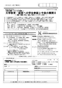 セミナー名:大学教育・経営への学生参画と今後の展開Ⅱ(7月10日開催)