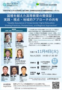 テーマは「国境を越えた⾼等教育の質保証:実践・視点・地域的アプローチの共有」です。